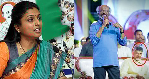 ஜெகன்மோகன் ரெட்டி மாதிரி ஒரு முதலமைச்சரை எங்குமே பார்க்க முடியாது. அவர் ஒவ்வொரு குடும்பத்துக்கும் இரண்டு லட்ச ரூபாய் மதிப்பிலான நிதி உதவிகளைச் செய்துள்ளார். சந்திரபாபு நாயுடுவுக்கு ஆதரவாக பவன் கல்யாண், ரஜினிகாந்த் ஆகியோர் தனித்தனியாக வந்தாலும் சரி, ஒன்றாக சேர்ந்து வந்தாலும் சரி, ஜெகன்மோகன் ரெட்டியை ஒன்றுமே செய்ய முடியாது" என்று ரோஜா பேசி உள்ளார்.