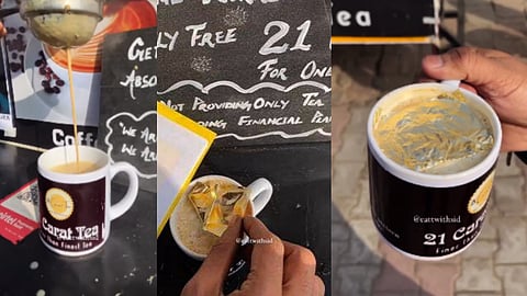சுவையான உணவுகள் தொடர்பாக வீடியோக்களை வெளியிடும் லக்னோவைச் சேர்ந்த FOOD BLOGGER ஒருவர் 24 கேரட் தங்க இழைகள்ல் போர்த்தப்பட்ட தங்க தேநீர் குறித்த புதுமையான டீயைப் பற்றிப் பகிர்ந்திருந்தார். தற்போது அந்த தங்க தேநீர் வீடியோ சமூக வலைத்தளத்தில் வைரலாகியுள்ளது.
