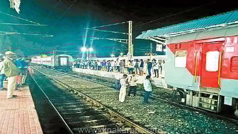 திருவள்ளூர் அருகில் செல்லும்போது, வழக்கமாக அதிவேகமாக செல்லும் இந்த ரயில், நேற்று முன்தினம் குறைந்த வேகத்தில் சென்றதாலும், ஓட்டுனரின் சாமர்த்தியமான செயலாலும், பெரும் விபத்து தவிர்க்கப்பட்டது.