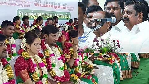 முன்னாள் அமைச்சர் ஆர்.பி. உதயகுமாரின் மகள் திருமணம் உட்பட 51 ஜோடிகளுக்கு சமத்துவ சமுதாய திருமணம் எடப்பாடி பழனிச்சாமி தலைமையில் இன்று சிறப்பாக நடைபெற்றது.