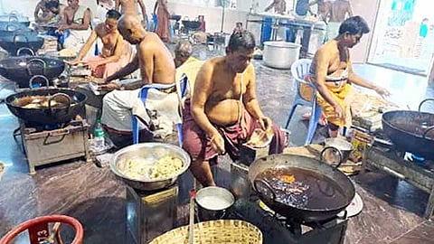 திருச்சி ஸ்ரீரங்கத்தைச் சேர்ந்தவர்கள் வடைகளைத் தயாரிக்கும் பணியில் ஈடுபட்டு உள்ளனர். வடை தயாரிக்கும் பணி 3 நாட்கள் நடைபெறும் என்றும் அதன்பின்னர் வடை மாலை கோர்க்கும் பணி நடைபெறும் என தெரிவிக்கப்பட்டுள்ளது.