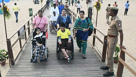 மெரினா கடற்கரையில் மாற்றுத் திறனாளிகள் சென்று வர அமைக்கப்பட்ட சிறப்பு மரப்பாதை, சமீபத்தில் தாக்கிய மாண்டஸ் புயலால் சேதமடைந்தது. இப்போது அந்த பாதை மீண்டும் சீரமைக்கப்பட்டு, இன்று முதல் பயன்பாட்டுக்கு வருகிறது.