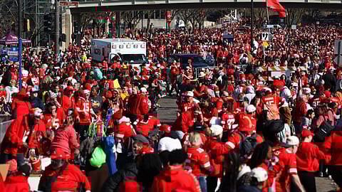 அமெரிக்காவில் உள்ள கன்சாஸ் நகரில் சூப்பர் பவுல் லீகின் வெற்றி பேரணியின்போது திடீரென்று ஏற்பட்ட துப்பாக்கிச் சூட்டால் பலர் உயிருக்குப் போராடி வருகின்றனர். இதில் ஒருவர் உயிரிழந்ததோடு பலர் படுகாயமும் அடைந்துள்ளனர்.