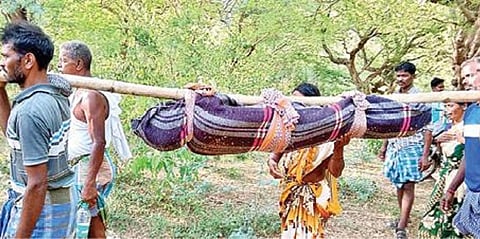 இறந்துபோன அந்தப் பெண்ணின் உடலை மருத்துவமனையிலிருந்து படவேடு ஜவ்வாதுமலை அடிவாரம் வரை ஆம்புலன்சில் கொண்டு வந்து இருக்கிறார்கள். அதற்கு மேல் செல்ல சாலை வசதி இல்லாததால் அங்கேயே அந்தப் பெண்ணின் உடல் இறக்கி வைத்துவிட்டு ஆம்புலன்ஸ் சென்று இருக்கிறது. பிறகு மலை மீது இருக்கும் அந்தப் பெண்ணின் வீட்டுக்கு, உடலைக் கொண்டு செல்ல என்ன செய்வது என்று யோசித்த அந்தப் பெண்ணின் உறவினர்கள், டோலி கட்டி அந்தப் பெண்ணின் உடலை மிகவும் சிரமப்பட்டு அந்த மலை கிராமத்துக்குக் கொண்டு சென்று இருக்கின்றனர்.