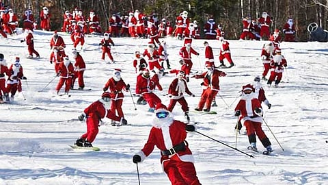 அந்த வகையில் அமெரிக்காவில் மெய்ன் மாநிலத்திலுள்ள நியூரி நகரில் பனிச்சரிவில், சாண்டாகிளாஸ் வேடமணிந்த 200-க்கும் மேற்பட்ட வீரர்கள் பனிச்சறுக்கு விளையாடி மகிழ்ந்துள்ளனர். இக்காட்சி அங்கு பெரும் வரவேற்பைப் பெற்றுள்ளது. உள்ளூர் தொண்டு நிறுவனத்திற்கு, நிதி திரட்டுவதற்காக இந்நிகழ்ச்சி நடத்தப்பட்டதாகத் தெரிவிக்கப் பட்டது.