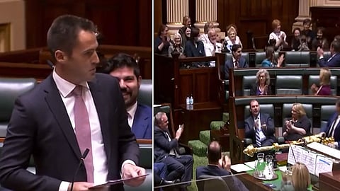 ஆஸ்திரேலியாவின் விக்டோரியா மாகாணத்தை சேர்ந்த தொழிலாளர் கட்சி எம்.பி. நாதன் லாம்பர்ட். இவர் நாடாளுமன்றத்தில் உரையாற்றிக் கொண்டிருந்தார். அப்போது அந்த உரையின் நடுவே, யாரும் எதிரபாரதவிதமாக, சக உறுப்பினரான நோவா எர்லிச் என்பவரிடம், காதலின் வெளிப்பாடாக, 'நாம் திருமணம் செய்துகொள்ள வேண்டும் என நினைக்கிறேன்' என்று குறிப்பிட்டுள்ளார்.