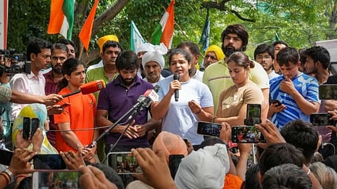 மல்யுத்த வீரர்கள் வினேஷ் போகத், சாக்ஷி மாலிக் மற்றும் பஜ்ரங் புனியா மற்றும் பிற எதிர்ப்பாளர்கள் மீது ஞாயிற்றுக்கிழமை கலவரம் மற்றும் கடமையை செய்ய இடையூறு செய்ததாக வழக்கு பதிவு செய்யப்பட்டது .