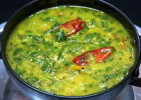 துவரம் பருப்பை குழைய வேக வைத்துக் கொள்ளவும். வாணலியில் எண்ணெய் விட்டு, சீரகம், பச்சை மிளகாய் சேர்க்கவும். பிறகு நறுக்கிய சின்ன வெங்காயம், தக்காளி போட்டு, வதக்கவும். நறுக்கிய பசலைக் கீரையைச் சேர்க்க வும். கீரை வெந்ததும், மஞ்சள் தூள், உப்பு, வெந்த துவரம் பருப்பு சேர்த்துக் கிளறவும். வாணலியில் எண்ணெய் விட்டு, கடுகு, உளுந்தம் பருப்பு, காய்ந்த மிளகாய், பெருங்காயம் சேர்த்துப் பொரித்து, கீரையில் சேர்க்கவும். சுவையான, சத்து மிகுந்த பசலைக் கீரைக் கூட்டு உடலுக்குக் குளிர்ச்சியைத் தரும்…