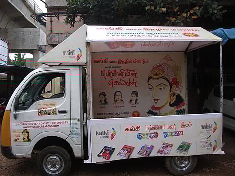 மற்றொரு பக்கம், விளம்பரம். இவ்வளவு பெரிய பணியைத் தொடங்கும்போது, ஊரெல்லாம் தம்பட்டம் அடித்துச் சொல்ல வேண்டாமா? மார்க்கெட்டிங் குழுவினர் அதற்கு ஒரு வழி கண்டுபிடித்தனர். தமிழகம் எங்கும் வாகனங்கள் செல்லும். பொன்னியின் செல்வன் தொடங்கும் செய்தியைச் சொல்லும். கூடவே துண்டு பிரசுரங்களை வழங்கும். கன்னியாகுமரியில் இருந்து ஒரு வேன், கோவையில் இருந்து மற்றொரு வேன் என்று திசைக்கொன்றாக வேன்கள் தயாராயின. ஓவியர் வேதா வரைந்த வண்ண ஓவியங்களைக் கொண்டே வேன்களை அலங்கரித்தோம்.