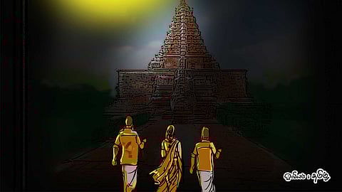 “இவையெல்லாம் நம்ம முன்னோர், கிட்டத்தட்ட நூறாண்டுகளுக்கு முன் துவங்கி வைத்த தமிழ்த்திருப்பணி என்பதை நினைத்துப்பார்த்தால், நம்ப முடியாத அளவுக்கு மகிழ்வாகவும், வியப்பாகவும் இருக்கிறது” என்று சொன்ன சிவசங்கரனின் முகம் மகிழ்ச்சியில் மலர்கிறது. மூவரும் அருகிலுள்ள மண்டபத்தில் நுழைகின்றனர். கதிரவன் மறைகிறான்.