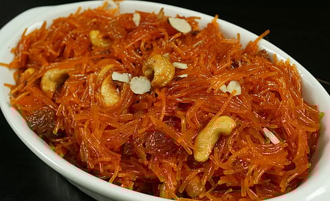 சேமியாவை பாலில் 15 நிமிடம் ஊறவைத்து மிக்ஸியில் அரைத்துக் கொள்ளவும். ஜீனியில் சிறிது நீர் விட்டு அடுப்பில் வைத்து கம்பி பதம் வரும் போது அரைத்த சேமியா விழுதை ஊற்றி நன்கு கிளறவும். இத்துடன் 1/2 கப் சூடான நீரை விட்டு நன்கு கிளறி விட்டு இடையிடையே நெய் ஊற்றி கிளறவும். அல்வா பதம் வந்ததும் நெய் தடவிய தட்டில் கொட்டி சமன் படுத்தினால் சேமியா அல்வா தயார்..