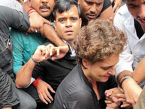 மேலும் அக்கட்சியின் மூத்த தலைவர்கள், எம்.பி-க்கள் ஆகியோரையும் காவல்துறை கைது செய்து பேருந்தில் அழைத்து சென்றது. பிரியங்கா காந்தி தன்னை கைது செய்வதற்கு எதிராக தரையில் அமர்ந்து தர்ணா போராட்டம் நடத்தினார். அதையும் மீறி அவரை கைது செய்து குண்டுகட்டாக தூக்கிச் சென்றனர்.