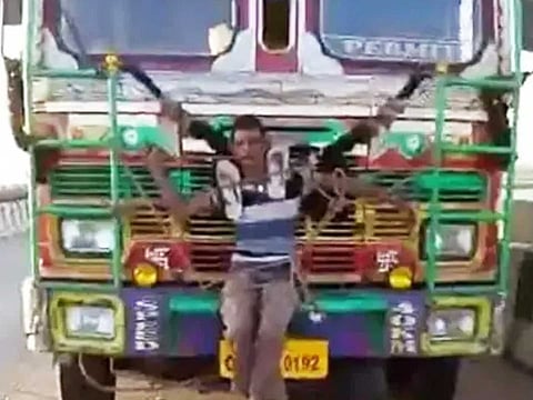 ஒடிசாவில் செல்போன் திருடியதாக குற்றம் சாட்டப்பட்ட நபரை லாரியின் முன்புறம் கட்டிப் போட்டுவிட்டு, லாரி ஓட்டுனர் வண்டியை வேகமாக ஓட்டிய சம்பவம் பெரும் பரபரப்பைக் கிளப்பியுள்ளது.