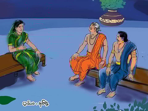 "மனதிற்குள் வைத்துக்கொண்டு புழுங்குவது உங்கள் உடல்நலத்திற்குத் தீங்காகும். என்னவென்று சொல்லுங்கள்" என்று கேட்கிறாள் அருள்மொழிநங்கை.