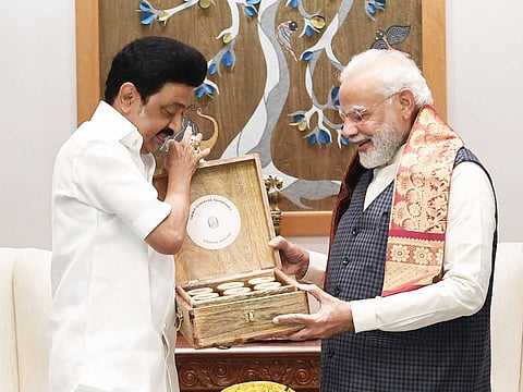 இந்தச் சந்திப்பின்போது, உடல் ஆரோக்கியத்தைப் பேண உதவும், தமிழ்நாட்டின் தானியங்கள் அடங்கிய பெட்டகத்தை பிரதமருக்கு மு.க.ஸ்டாலின் நினைவுப் பரிசாக வழங்கினார்.