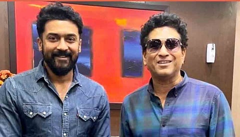 பிரபல திரைப்பட நடிகர் சூர்யாவும் கிரிக்கெட் ஜாம்பவான் சச்சின் டெண்டுல்கரும் அருகருகே இருப்பது போன்ற ஒரு புகைப்படம் தற்சமயம் சமூக வலைதளங்களில் மிகவும் பரவலாகப் பகிரப்பட்டு வருகிறது. நடிகர் சூர்யா தற்போது இயக்குநர் சிறுத்தை சிவாவுடன் இணைந்து அவரது 42வது படத்தில் நடித்து வருகிறார். ‘சூரரைப் போற்று’ திரைப்படத்தின் இந்தி ரீமேக்கில் நடிகர் சூர்யா சிறப்புத் தோற்றத்தில் நடித்து வருகிறார். இதற்காக அவர் கடந்த சில மாதங்களாக அடிக்கடி மும்பைக்குச் சென்று வருவதும் நிகழ்ந்து வருகிறது.