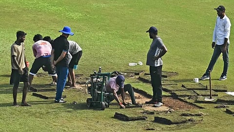 ஊழியர்கள் மைதானத்தின் நீரை அகற்ற முடியாமல் தடுமாறினர். இதனால், முதல் இரண்டு நாள் மழை இல்லை என்றபோதிலும், போட்டி நடைபெறவில்லை. இந்தநிலையில் மூன்றாவது மற்றும் நான்காவது நாட்களில் நல்ல மழை பெய்ததால், விளையாட முடியாத நிலை ஏற்பட்டது. அதேபோல், இன்றும் மைதானத்தில் மழை நீர் தேங்கி நிற்பதால், போட்டி கைவிடப்பட்டது. எனவே, ஒரு பந்துக்கூட வீசாமல், இந்த டெஸ்ட் தொடர் கைவிடப்பட்டது பெரும் அதிர்ச்சியை ஏற்படுத்தியுள்ளது.