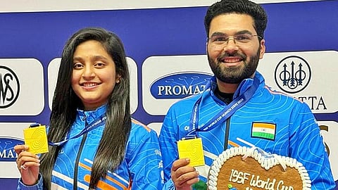 அந்த வகையில் முன்னணி வீரர், வீராங்கனைகள் பங்கேற்றுள்ள உலகக் கோப்பை துப்பாக்கி சுடுதல் போட்டி ஜெர்மனியின் முனிச் நகரில் நடந்து வருகிறது. இந்த போட்டியில் கலந்து கொண்ட முன்னனி இந்திய வீரர்கள் பல்வேறு சாதனைகளை படைத்து வருகின்றனர். இதில் நேற்று முன்தினம் நடந்த துப்பாக்கி சுடுதல் போட்டியில் இந்திய வீராங்கனை சுருச்சி சிங் தங்கம் வென்று சாதனை படைத்தார். இந்நிலையில் 10 மீட்டர் ஏர் ரைபிள் கலப்பு அணி பிரிவில் இந்தியாவின் ஆர்யா போர்ஸ் மற்றும் அர்ஜுன் பாபுடா ஜோடி, தங்கப் பதக்கம் வென்று மற்றொரு சாதனை படைத்துள்ளனர். 10 மீட்டர் ஏர்ரைபிள் கலப்பு அணிகள் பிரிவில் நடந்த போட்டியில் 58 இணைகள் பங்கேற்றனர்.