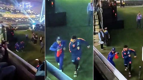 இந்நிலையில் சற்றும் எதிர்பாராத வகையில் மைதானத்தில் வந்துகொண்டிருந்த கோலி-இஷான் இருவரும் சந்தோஷத்தின் வெளிப்பாடாக ஒரு அழகான ஆட்டத்தைப் போட்டு ரசிகர்களை மேலும் உற்சாகப்படுத்தினர்.