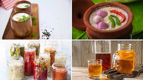 6. பட்டர் மில்க் அல்லது ச்சாஸ்: இது தயிரில் தண்ணீர் மற்றும் உப்பு, பெருங்காயம், இஞ்சி, மல்லி இலை போன்ற ஸ்பைஸஸ் சேர்த்து தயாரிக்கப்படுகிறது. இது குடலை குளிர்விக்கும் தன்மை கொண்டது. இதிலுள்ள புரோபயாட்டிக்குகள் செரிமானம் சிறப்படையவும், கட் ஃபுளோரா (Gut Flora) விற்கு ஆரோக்கியமான சூழலை உருவாக்கித் தரவும் உதவுகின்றன.