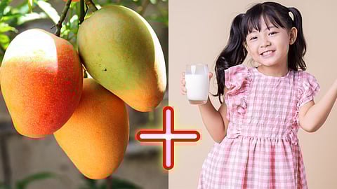 செரிமான ஆரோக்கியம்: மாம்பழத்தில் நார்ச்சத்து அதிகம் உள்ளது, இது செரிமான ஆரோக்கியத்தை மேம்படுத்தி நல்ல குடல் இயக்கத்திற்கு உதவுகிறது. மறுபுறம், பாலில் இருக்கும் லாக்டோஸ் பல நன்மை பயக்கும் குடல் பாக்டீரியாக்களின் வளர்ச்சியை ஊக்குவிக்கிறது. மாம்பழம் மற்றும் பால் கலவையானது செரிமான ஆரோக்கியத்திற்கு ஊக்கமளித்து மலச்சிக்கலைத் தடுத்து ஆரோக்கியமான குடலுக்கு வழிவகுக்கிறது.