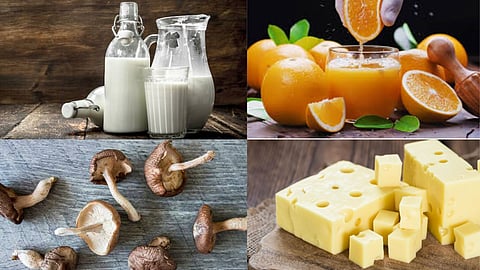 5. சீஸ்: ஒரு அவுன்ஸ் அளவிலான வெவ்வேறு வகை சீஸ்களில், ஒரு நாளைக்கு உடலுக்குத் தேவையான வைட்டமின் D3 சத்தில் பத்து சதவிகிதம் வைட்டமின் D3 அடங்கியுள்ளது.