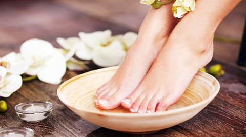 வெதுவெதுப்பான நீர் நிறைந்த பெரிய பாத்திரத்தில் ஷாம்பூ உப்பு மற்றும் ஒரு எலுமிச்சம் பழத்தின் சாறை விட்டு அந்த தண்ணீரில் சில நிமிடங்கள் பாதங்களை அமிழ்த்தி வைத்து ப்யூமிக் கல்லால் தேய்க்க வேண்டும். பிறகு குளிர்ந்த நீரால் கழுவி நன்றாகத் துடைத்து விடவும்.