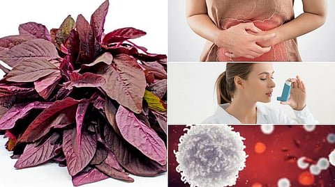 நாள்பட்ட நோய்க்கு சிகிச்சையளிப்பதில் பீட்டா கரோட்டின் மிகவும் பயனுள்ளதாக இருக்கும். சிவப்பு கீரையில் பீட்டா கரோட்டின் மிகுந்து உள்ளது மற்றும் ஆஸ்துமா வராமல் தடுக்கும் ஊட்டச்சத்துக்களும் உள்ளன. இது மூச்சுக்குழாய் குழாய்களில் உள்ள தடைகளை நீக்குகிறது.