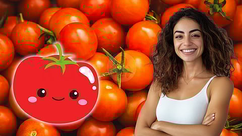 நமது உடம்பில் முதுமை தோன்றுவதற்கு காரணம் நமது சருமம் சுருங்குவதுதான். இந்த சுருக்கத்தை வர விடாமல் என்றும் இளமை பொலிவுடன் திகழ்வதற்கு தக்காளி பழம் பெரிதும் துணை புரிகிறது.