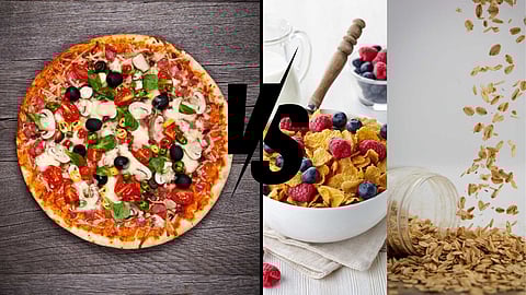 நியூயார்க்கில் நடைபெற்ற இந்த ஆய்வில், பேக் செய்யப்பட்ட (Packaged Cereals) காலை உணவுகளை விட பீட்சா ஆரோக்கியமானது எனத் தெரியவந்துள்ளது.