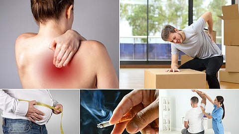 g) உடற்பயிற்சி இல்லாமை, நீண்ட நேரம் ஒரே பொசிஷனில் உட்கார்ந்து இருப்பது, மோசமான தோரணை, நீண்ட நேர கணினி பயன்பாடு போன்றவை முதுகு வலியை ஏற்படுத்தலாம்.