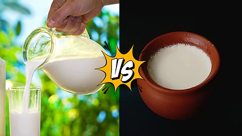 பால் Vs தயிர்: குடல் ஆரோக்கியத்தை பராமரிக்க விரும்புபவர்களுக்கு பாலை விட தயிரே சிறந்த தேர்வாக இருக்கும். தயிரில் உள்ள நொதித்தல் செயல்முறை செரிமானத்தை மேம்படுத்துகிறது. இது லாக்டோஸ் உள்ளடக்கத்தை குறைத்து நன்மை பயக்கும் பாக்டீரியாக்களை ஊக்குவிக்கிறது. பாலில் உள்ள லாக்டோஸ் உங்களுக்கு எந்த பாதிப்புகளையும் தரவில்லை என்றால், பால்குடிப்பதும் நல்லதுதான். இருப்பினும் பாலைவிட தயிரை உங்கள் உணவில் அதிகமாக சேர்த்துக் கொள்வதன் மூலம் செரிமான அமைப்பை மேம்படுத்தி ஒட்டுமொத்த உடல் ஆரோக்கியத்தையும் பராமரிக்கலாம்.