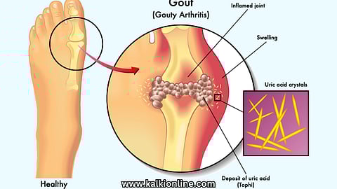 யூரிக் அமில பாதிப்பு தீவிரமாக இருக்கும்போது நடப்பது, உட்காருவது போன்ற செயல்பாடுகள் கடினமாகிறது. உடற்பயிற்சியின்மை, மோசமான உணவுப் பழக்கங்கள் காரணமாக உடலில் பியூரின் என்ற தனிமம் அதிகரித்து, யூரிக் அமிலத்தை உருவாக்குகிறது. இந்த யூரிக் அமிலமானது மூட்டுப் பகுதிகளில் படிந்து இடைவெளிகளை உருவாக்குவதால், வலி, வீக்கம் போன்ற பாதிப்புகள் ஏற்படலாம்.