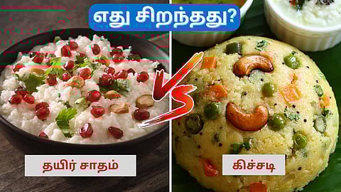 தயிர் சாதம், கிச்சடி இரண்டுமே ஹெல்தி என்றாலும் நம் தயிர் சாதம் பல வித நன்மைகளைக் கொண்டுள்ளது. அதிக ஆரோக்கியமானது.